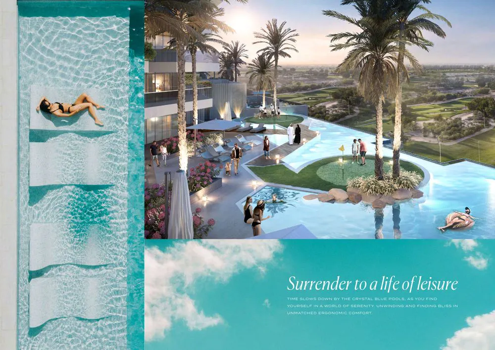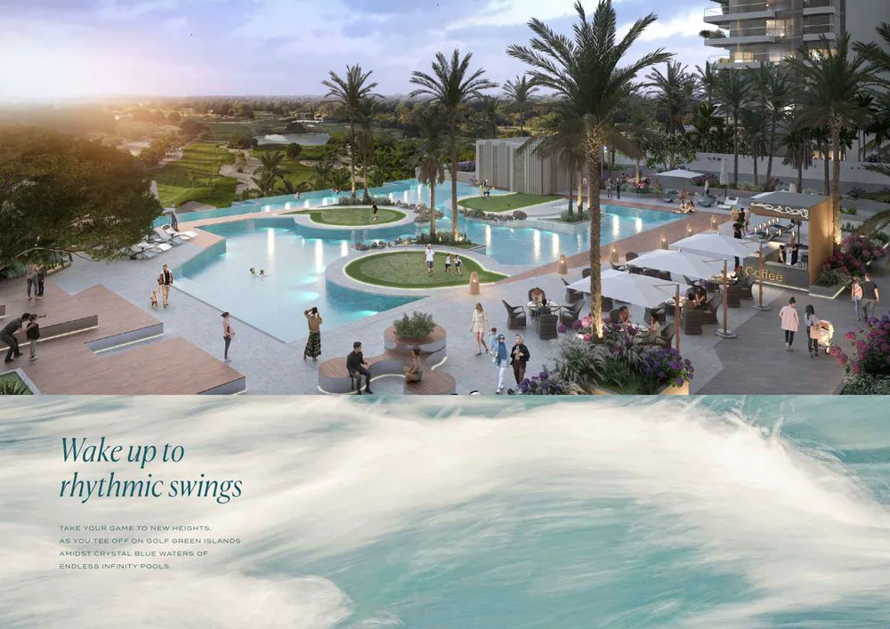 INDULGE IN THE EPITOME OF LUXURY LIVING AT GOLF GREENS IN DAMAC HILLS WHERE A CAPTIVATING EXTERIOR DESIGN SEAMLESSLY INTEGRATES WITH THE NATURAL SPLENDOUR OF A WORLD-CLASS GOLF COURSE.